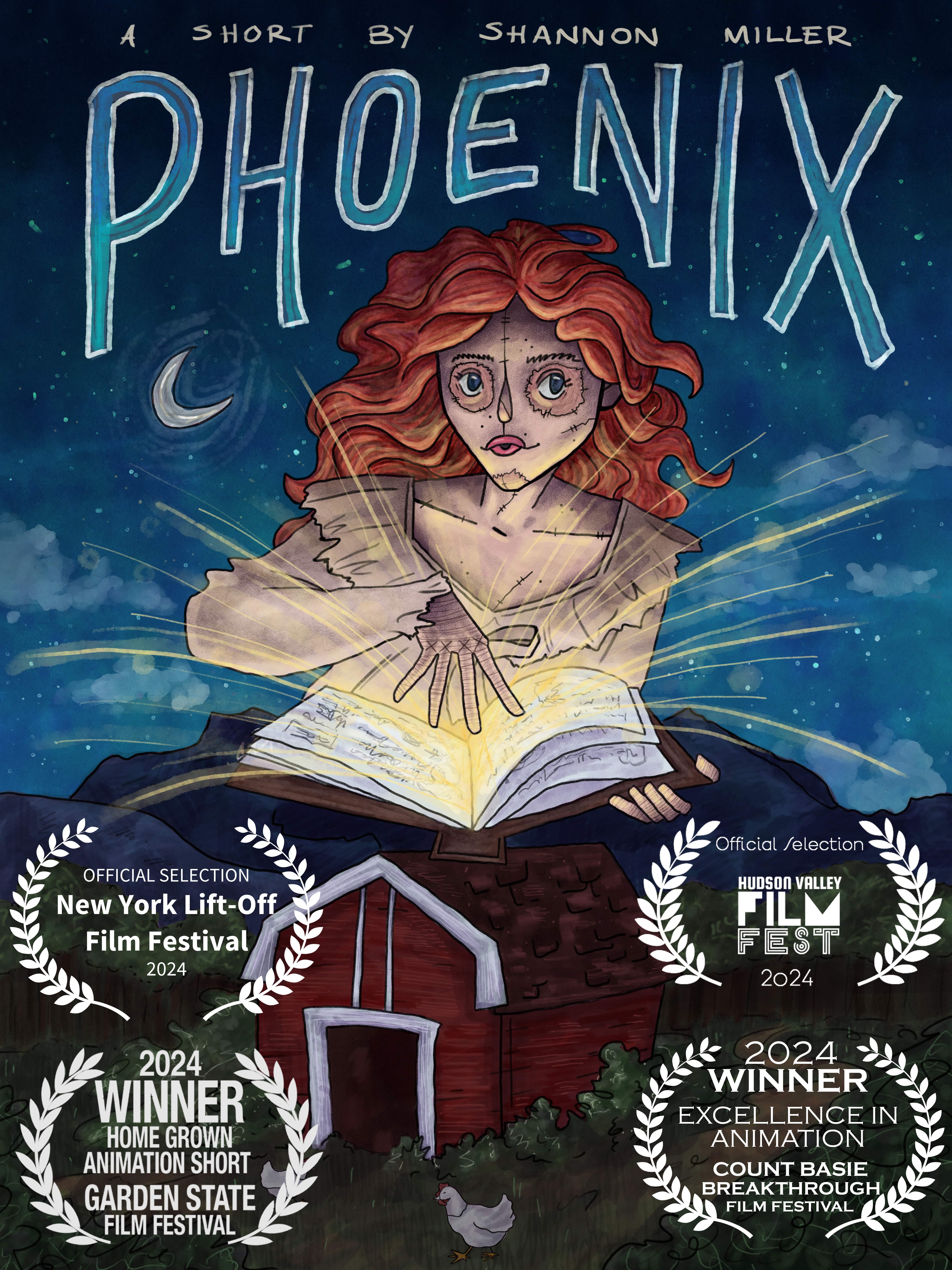 "Phoenix" is a stop motion animated short following Mai, a teenage girl who has been practicing witchcraft in secret. Despite the risk of being disowned by her family if discovered, Mai sneaks out after dark to attempt a resurrection spell that may bring her family's farm cow, Daisy.